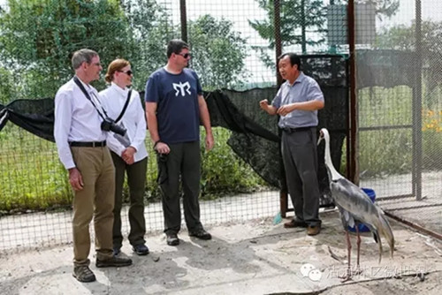 国际鹤类基金会副主席吉姆·哈里斯考察大沾河湿地保护区