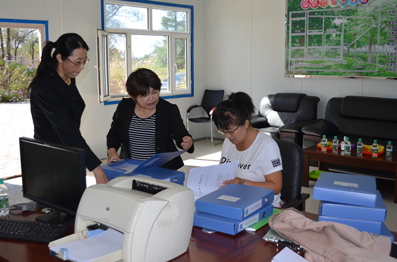在对苗圃内业及档案管理建设检查中,重点检查了作业设计、苗圃日记、物候谱、灾害谱、改土设计、种源资料、技术档案、工作总结等内业资料,并查看了苗圃规划图,苗圃工作人员岗位责任制等图板。检查组工作人员检查认真、细致,严格按照评分标准逐项落实。