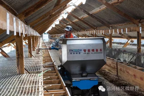 现代化的种貂养殖基地,借鉴了国内最先进的管理技术,引进了自动喂食车,并根据气候特点自制保温水槽。貂舍周围进行了封闭,实行严格消毒,配备了技术员和专业兽医,管理种貂的繁育和疫病防治。山上养殖,山下有冷冻库和饲料加工厂。每天都有专门的送餐车,把用鸡肝、鲜肉、海鱼、谷粉等20多种原材料精心调配的“营养套餐”送到貂们的口边。