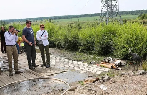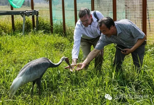 国际鹤类基金会副主席吉姆·哈里斯考察大沾河湿地保护区