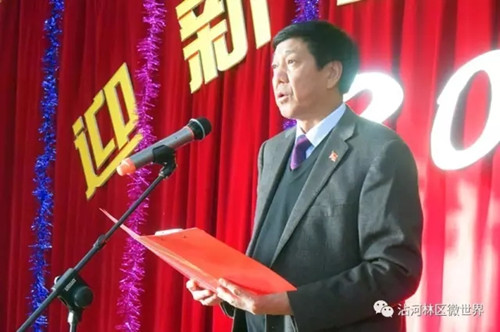 局党委书记毕雪峰在新年致辞中首先回顾了一年来我局党建、文化、平安林区建设、产业发展、财税体制改革、民生改善等各项工作取得的丰硕成果。同时指出,2017年是全面实施“十三五”规划,深化林区改革、强化管理的关键一年,面对艰巨任务,我们要坚定必胜信念和信心,深入学习贯彻系列讲话精神,不忘初心,继续前行,深化改革,加快发展,高标准,高质量落实各项任务。本着生态为先、产业为要、文化为基、民生为本的原则,把增进全局人民福祉,让全局职工群众过上好日子作为我们的目标追求,加大招商引资,推进产业发展,全力培育新的经济增长点,不断延伸产业链。以建设美丽林区为目标,全力打造宜居、宜业、宜游的林区环境,也诚邀沾河的有识之士回乡投资兴业发展,携手并肩为美丽沾河、美丽家乡建设贡献力量。