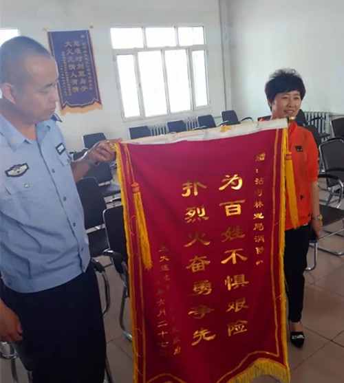 近日,五大连池市常务副市长杨志兴带领五市消防大队、公安局、市委办公室及龙镇等领导来到沾河公安消防大队看望慰问全体消防指战员,对沾河公安局消防大队在救援龙镇南岗屯小五队“5.28”火灾中快速反应、互相支援表示感谢,并赠上“为百姓不惧艰险、扑烈火奋勇争先”的锦旗。
